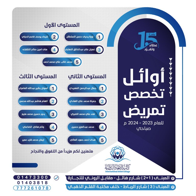 شهادة التخرج: دبلوم فني التمريض.